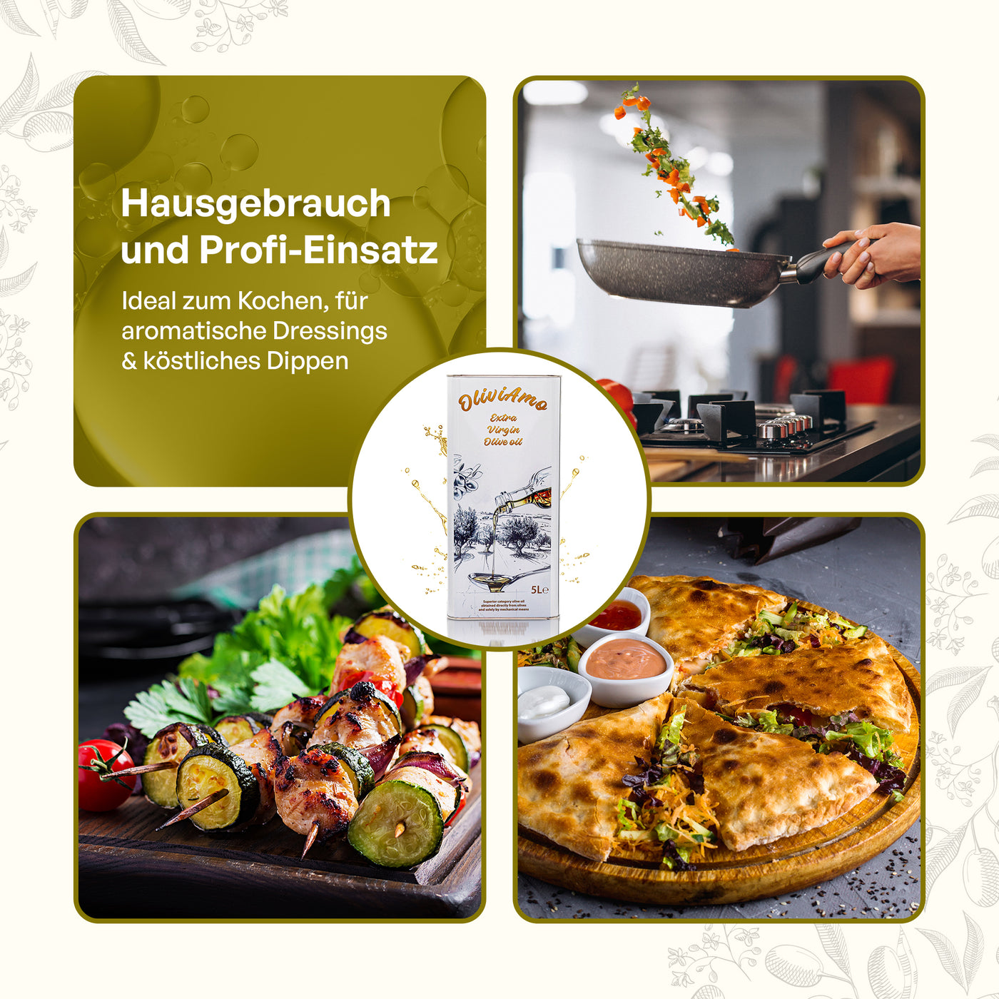 100% reines Olivenöl– Erste Extraktion für maximalen Geschmack Direkt vom Erzeuger– Authentisch & unverfälscht Höchste Qualität– Ideal für Feinschmecker & Genießer Gesund & nachhaltig– Reich an Antioxidantien und ungesättigten Fettsäuren